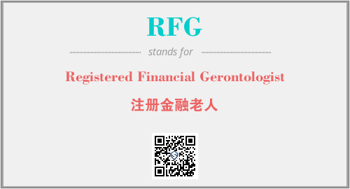 上述内容是“Registered Financial Gerontologist”作为“RFG”的缩写,解释为“注册金融老人”时的信息,以及英文缩略词RFG所代表的英文单词,其对应的中文拼音、详细解释以及在英文中的流行度和相关分类、应用领域及应用示例等。