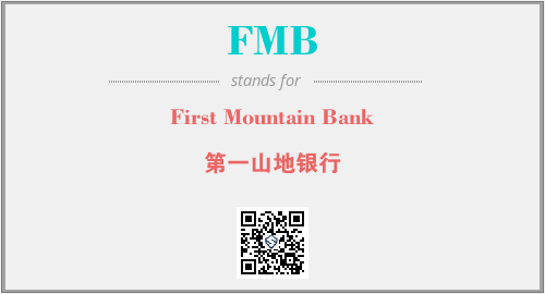 上述内容是“First Mountain Bank”作为“FMB”的缩写,解释为“第一山地银行”时的信息,以及英文缩略词FMB所代表的英文单词,其对应的中文拼音、详细解释以及在英文中的流行度和相关分类、应用领域及应用示例等。