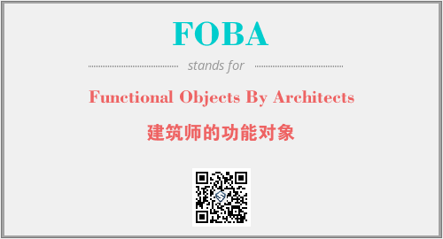 上述内容是“Functional Objects By Architects”作为“FOBA”的缩写,解释为“建筑师的功能对象”时的信息,以及英文缩略词FOBA所代表的英文单词,其对应的中文拼音、详细解释以及在英文中的流行度和相关分类、应用领域及应用示例等。