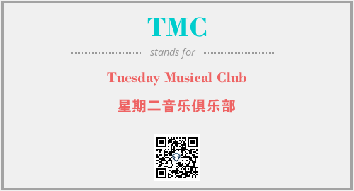 以上为Tuesday Musical Club英文缩略词TMC的中文解释,以及该英文缩写在英语的流行度、分类和应用领域方面的信息。