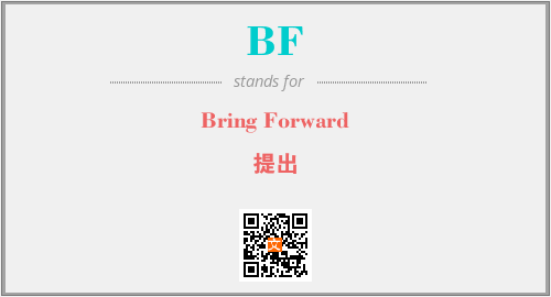 上述内容是“Bring Forward”作为“BF”的缩写,解释为“提出”时的信息,以及英文缩略词BF所代表的英文单词,其对应的中文拼音、详细解释以及在英文中的流行度和相关分类、应用领域及应用示例等。