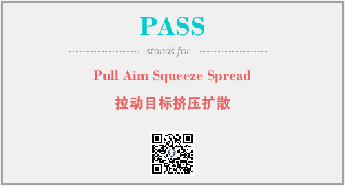 上述内容是“Pull Aim Squeeze Spread”作为“PASS”的缩写,解释为“拉动目标挤压扩散”时的信息,以及英文缩略词PASS所代表的英文单词,其对应的中文拼音、详细解释以及在英文中的流行度和相关分类、应用领域及应用示例等。