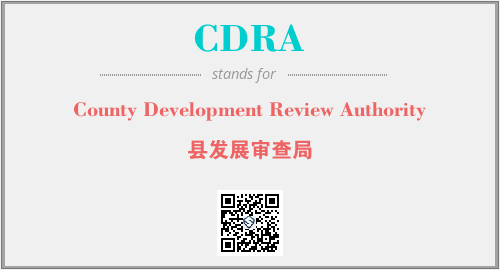 英文缩略词“CDRA”经常作为“County Development Review Authority”的英文缩写来使用,中文表示:“县发展审查局”。本文将详细介绍英文缩写词CDRA所代表英文单词,其对应的中文拼音、详细解释以及在英语中的流行度。此外,还有关于缩略词CDRA的分类、应用领域及相关应用示例等。