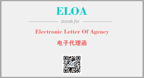 英文缩略词“ELOA”经常作为“Electronic Letter Of Agency”的英文缩写来使用,中文表示:“电子代理函”。本文将详细介绍英文缩写词ELOA所代表英文单词,其对应的中文拼音、详细解释以及在英语中的流行度。此外,还有关于缩略词ELOA的分类、应用领域及相关应用示例等。