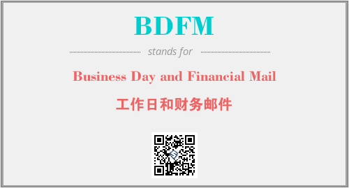 以上为Business Day and Financial Mail英文缩略词BDFM的中文解释,以及该英文缩写在英语的流行度、分类和应用领域方面的信息。