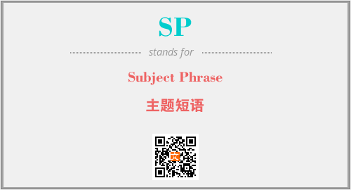 上述内容是“Subject Phrase”作为“SP”的缩写,解释为“主题短语”时的信息,以及英文缩略词SP所代表的英文单词,其对应的中文拼音、详细解释以及在英文中的流行度和相关分类、应用领域及应用示例等。