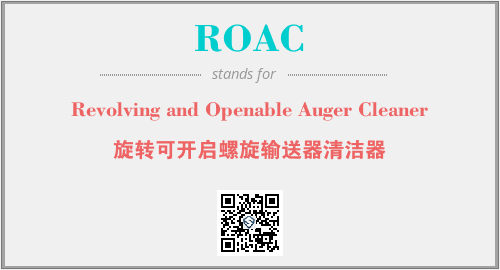上述内容是“Revolving and Openable Auger Cleaner”作为“ROAC”的缩写,解释为“旋转可开启螺旋输送器清洁器”时的信息,以及英文缩略词ROAC所代表的英文单词,其对应的中文拼音、详细解释以及在英文中的流行度和相关分类、应用领域及应用示例等。
