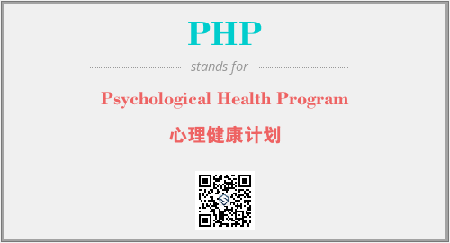 上述内容是“Psychological Health Program”作为“PHP”的缩写,解释为“心理健康计划”时的信息,以及英文缩略词PHP所代表的英文单词,其对应的中文拼音、详细解释以及在英文中的流行度和相关分类、应用领域及应用示例等。