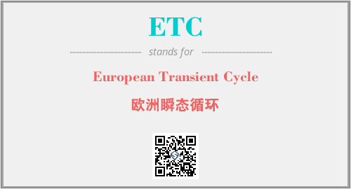 英文缩略词“ETC”经常作为“European Transient Cycle”的英文缩写来使用,中文表示:“欧洲瞬态循环”。本文将详细介绍英文缩写词ETC所代表英文单词,其对应的中文拼音、详细解释以及在英语中的流行度。此外,还有关于缩略词ETC的分类、应用领域及相关应用示例等。