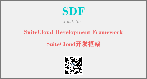 上述内容是“SuiteCloud Development Framework”作为“SDF”的缩写,解释为“SuiteCloud开发框架”时的信息,以及英文缩略词SDF所代表的英文单词,其对应的中文拼音、详细解释以及在英文中的流行度和相关分类、应用领域及应用示例等。