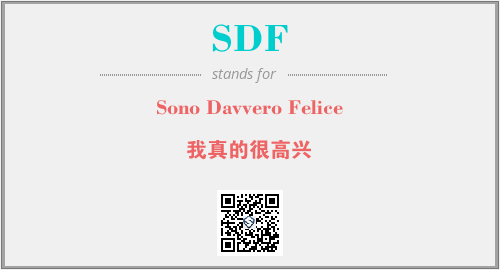 上述内容是“Sono Davvero Felice”作为“SDF”的缩写,解释为“我真的很高兴”时的信息,以及英文缩略词SDF所代表的英文单词,其对应的中文拼音、详细解释以及在英文中的流行度和相关分类、应用领域及应用示例等。