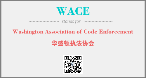 上述内容是“Washington Association of Code Enforcement”作为“WACE”的缩写,解释为“华盛顿执法协会”时的信息,以及英文缩略词WACE所代表的英文单词,其对应的中文拼音、详细解释以及在英文中的流行度和相关分类、应用领域及应用示例等。