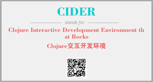 英文缩略词“CIDER”经常作为“Clojure Interactive Development Environment that Rocks”的英文缩写来使用,中文表示:“Clojure交互开发环境”。本文将详细介绍英文缩写词CIDER所代表英文单词,其对应的中文拼音、详细解释以及在英语中的流行度。此外,还有关于缩略词CIDER的分类、应用领域及相关应用示例等。