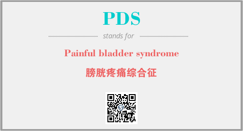 上述内容是“Painful bladder syndrome”作为“PDS”的缩写,解释为“膀胱疼痛综合征”时的信息,以及英文缩略词PDS所代表的英文单词,其对应的中文拼音、详细解释以及在英文中的流行度和相关分类、应用领域及应用示例等。