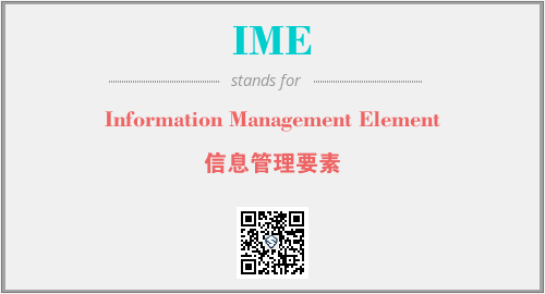 英文缩略词“IME”经常作为“Information Management Element”的英文缩写来使用,中文表示:“信息管理要素”。本文将详细介绍英文缩写词IME所代表英文单词,其对应的中文拼音、详细解释以及在英语中的流行度。此外,还有关于缩略词IME的分类、应用领域及相关应用示例等。