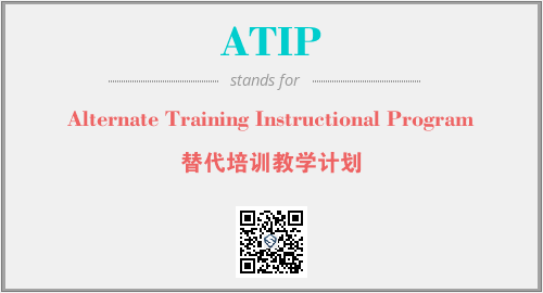英文缩略词“ATIP”经常作为“Alternate Training Instructional Program”的英文缩写来使用,中文表示:“替代培训教学计划”。本文将详细介绍英文缩写词ATIP所代表英文单词,其对应的中文拼音、详细解释以及在英语中的流行度。此外,还有关于缩略词ATIP的分类、应用领域及相关应用示例等。