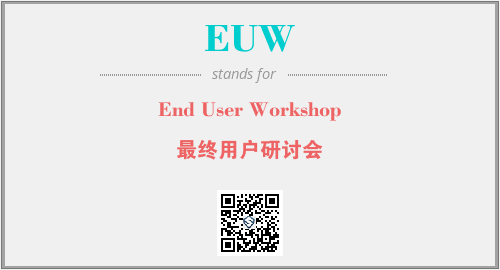 英文缩略词“EUW”经常作为“End User Workshop”的英文缩写来使用,中文表示:“最终用户研讨会”。本文将详细介绍英文缩写词EUW所代表英文单词,其对应的中文拼音、详细解释以及在英语中的流行度。此外,还有关于缩略词EUW的分类、应用领域及相关应用示例等。