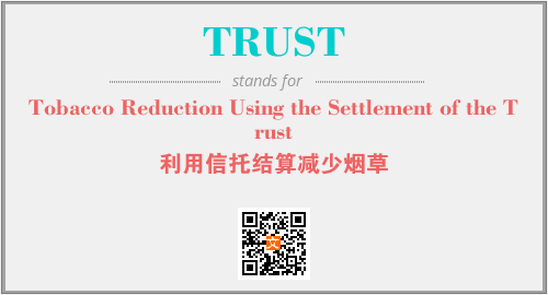 以上为Tobacco Reduction Using the Settlement of the Trust英文缩略词TRUST的中文解释,以及该英文缩写在英语的流行度、分类和应用领域方面的信息。