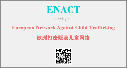 上述内容是“European Network Against Child Trafficking”作为“ENACT”的缩写,解释为“欧洲打击贩卖儿童网络”时的信息,以及英文缩略词ENACT所代表的英文单词,其对应的中文拼音、详细解释以及在英文中的流行度和相关分类、应用领域及应用示例等。