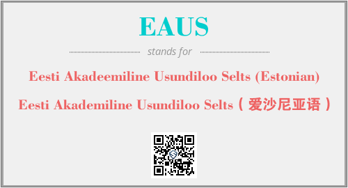 上述内容是“Eesti Akadeemiline Usundiloo Selts (Estonian)”作为“EAUS”的缩写,解释为“Eesti Akademiline Usundiloo Selts(爱沙尼亚语)”时的信息,以及英文缩略词EAUS所代表的英文单词,其对应的中文拼音、详细解释以及在英文中的流行度和相关分类、应用领域及应用示例等。