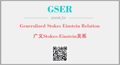 上述内容是“Generalized Stokes Einstein Relation”作为“GSER”的缩写,解释为“广义Stokes-Einstein关系”时的信息,以及英文缩略词GSER所代表的英文单词,其对应的中文拼音、详细解释以及在英文中的流行度和相关分类、应用领域及应用示例等。