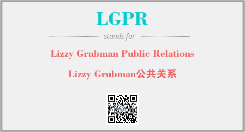 上述内容是“Lizzy Grubman Public Relations”作为“LGPR”的缩写,解释为“Lizzy Grubman公共关系”时的信息,以及英文缩略词LGPR所代表的英文单词,其对应的中文拼音、详细解释以及在英文中的流行度和相关分类、应用领域及应用示例等。