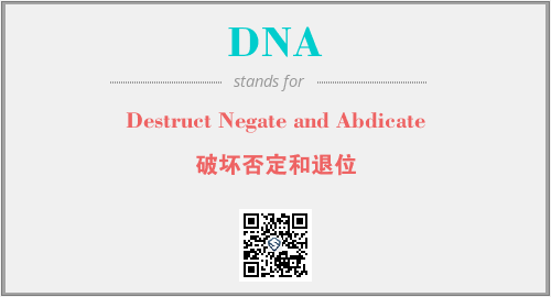 以上为Destruct Negate and Abdicate英文缩略词DNA的中文解释,以及该英文缩写在英语的流行度、分类和应用领域方面的信息。