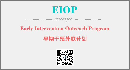 英文缩略词“EIOP”经常作为“Early Intervention Outreach Program”的英文缩写来使用,中文表示:“早期干预外联计划”。本文将详细介绍英文缩写词EIOP所代表英文单词,其对应的中文拼音、详细解释以及在英语中的流行度。此外,还有关于缩略词EIOP的分类、应用领域及相关应用示例等。
