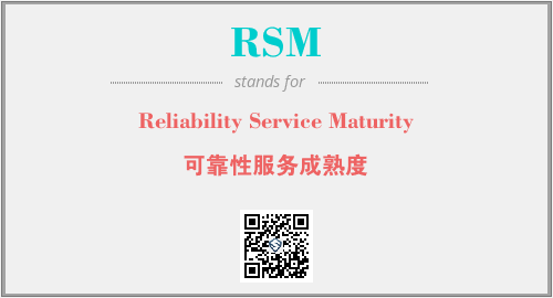 英文缩略词“RSM”经常作为“Reliability Service Maturity”的英文缩写来使用,中文表示:“可靠性服务成熟度”。本文将详细介绍英文缩写词RSM所代表英文单词,其对应的中文拼音、详细解释以及在英语中的流行度。此外,还有关于缩略词RSM的分类、应用领域及相关应用示例等。
