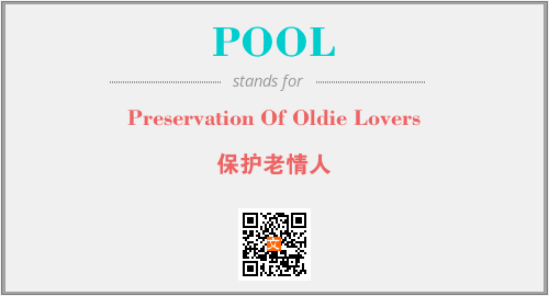 上述内容是“Preservation Of Oldie Lovers”作为“POOL”的缩写,解释为“保护老情人”时的信息,以及英文缩略词POOL所代表的英文单词,其对应的中文拼音、详细解释以及在英文中的流行度和相关分类、应用领域及应用示例等。
