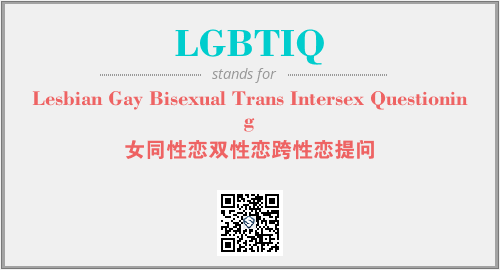 英文缩略词“LGBTIQ”经常作为“Lesbian Gay Bisexual Trans Intersex Questioning”的英文缩写来使用,中文表示:“女同性恋双性恋跨性恋提问”。本文将详细介绍英文缩写词LGBTIQ所代表英文单词,其对应的中文拼音、详细解释以及在英语中的流行度。此外,还有关于缩略词LGBTIQ的分类、应用领域及相关应用示例等。