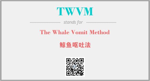 英文缩略词“TWVM”经常作为“The Whale Vomit Method”的英文缩写来使用,中文表示:“鲸鱼呕吐法”。本文将详细介绍英文缩写词TWVM所代表英文单词,其对应的中文拼音、详细解释以及在英语中的流行度。此外,还有关于缩略词TWVM的分类、应用领域及相关应用示例等。