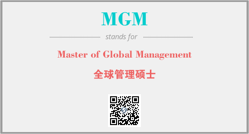 英文缩略词“MGM”经常作为“Master of Global Management”的英文缩写来使用,中文表示:“全球管理硕士”。本文将详细介绍英文缩写词MGM所代表英文单词,其对应的中文拼音、详细解释以及在英语中的流行度。此外,还有关于缩略词MGM的分类、应用领域及相关应用示例等。