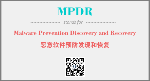 上述内容是“Malware Prevention Discovery and Recovery”作为“MPDR”的缩写,解释为“恶意软件预防发现和恢复”时的信息,以及英文缩略词MPDR所代表的英文单词,其对应的中文拼音、详细解释以及在英文中的流行度和相关分类、应用领域及应用示例等。