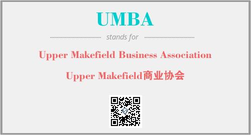 上述内容是“Upper Makefield Business Association”作为“UMBA”的缩写,解释为“Upper Makefield商业协会”时的信息,以及英文缩略词UMBA所代表的英文单词,其对应的中文拼音、详细解释以及在英文中的流行度和相关分类、应用领域及应用示例等。