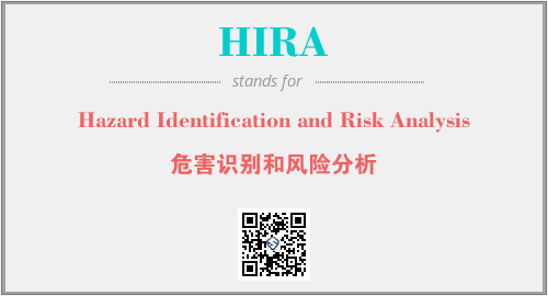上述内容是“Hazard Identification and Risk Analysis”作为“HIRA”的缩写,解释为“危害识别和风险分析”时的信息,以及英文缩略词HIRA所代表的英文单词,其对应的中文拼音、详细解释以及在英文中的流行度和相关分类、应用领域及应用示例等。