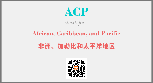 上述内容是“African, Caribbean, and Pacific”作为“ACP”的缩写,解释为“非洲、加勒比和太平洋地区”时的信息,以及英文缩略词ACP所代表的英文单词,其对应的中文拼音、详细解释以及在英文中的流行度和相关分类、应用领域及应用示例等。
