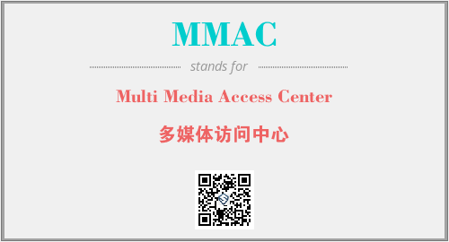 英文缩略词“MMAC”经常作为“Multi Media Access Center”的英文缩写来使用,中文表示:“多媒体访问中心”。本文将详细介绍英文缩写词MMAC所代表英文单词,其对应的中文拼音、详细解释以及在英语中的流行度。此外,还有关于缩略词MMAC的分类、应用领域及相关应用示例等。