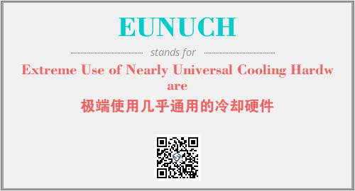 以上为Extreme Use of Nearly Universal Cooling Hardware英文缩略词EUNUCH的中文解释,以及该英文缩写在英语的流行度、分类和应用领域方面的信息。