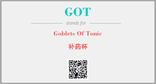 英文缩略词“GOT”经常作为“Goblets Of Tonic”的英文缩写来使用,中文表示:“补药杯”。本文将详细介绍英文缩写词GOT所代表英文单词,其对应的中文拼音、详细解释以及在英语中的流行度。此外,还有关于缩略词GOT的分类、应用领域及相关应用示例等。