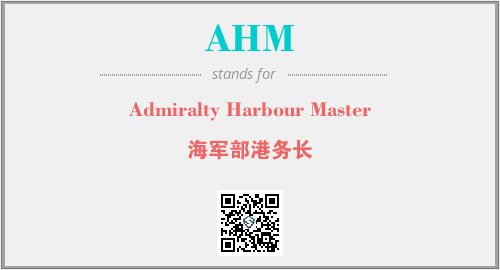 上述内容是“Admiralty Harbour Master”作为“AHM”的缩写,解释为“海军部港务长”时的信息,以及英文缩略词AHM所代表的英文单词,其对应的中文拼音、详细解释以及在英文中的流行度和相关分类、应用领域及应用示例等。