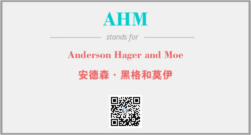 上述内容是“Anderson Hager and Moe”作为“AHM”的缩写,解释为“安德森·黑格和莫伊”时的信息,以及英文缩略词AHM所代表的英文单词,其对应的中文拼音、详细解释以及在英文中的流行度和相关分类、应用领域及应用示例等。
