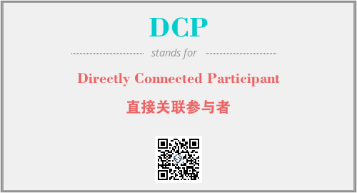 上述内容是“Directly Connected Participant”作为“DCP”的缩写,解释为“直接关联参与者”时的信息,以及英文缩略词DCP所代表的英文单词,其对应的中文拼音、详细解释以及在英文中的流行度和相关分类、应用领域及应用示例等。