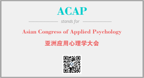 上述内容是“Asian Congress of Applied Psychology”作为“ACAP”的缩写,解释为“亚洲应用心理学大会”时的信息,以及英文缩略词ACAP所代表的英文单词,其对应的中文拼音、详细解释以及在英文中的流行度和相关分类、应用领域及应用示例等。