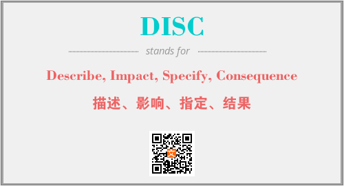 上述内容是“Describe, Impact, Specify, Consequence”作为“DISC”的缩写,解释为“描述、影响、指定、结果”时的信息,以及英文缩略词DISC所代表的英文单词,其对应的中文拼音、详细解释以及在英文中的流行度和相关分类、应用领域及应用示例等。