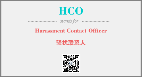 上述内容是“Harassment Contact Officer”作为“HCO”的缩写,解释为“骚扰联系人”时的信息,以及英文缩略词HCO所代表的英文单词,其对应的中文拼音、详细解释以及在英文中的流行度和相关分类、应用领域及应用示例等。