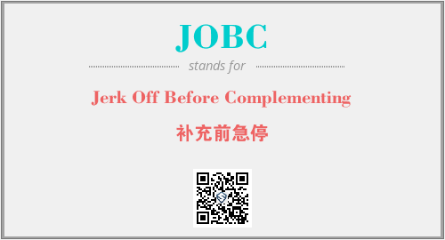 上述内容是“Jerk Off Before Complementing”作为“JOBC”的缩写,解释为“补充前急停”时的信息,以及英文缩略词JOBC所代表的英文单词,其对应的中文拼音、详细解释以及在英文中的流行度和相关分类、应用领域及应用示例等。