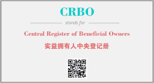 上述内容是“Central Register of Beneficial Owners”作为“CRBO”的缩写,解释为“实益拥有人中央登记册”时的信息,以及英文缩略词CRBO所代表的英文单词,其对应的中文拼音、详细解释以及在英文中的流行度和相关分类、应用领域及应用示例等。