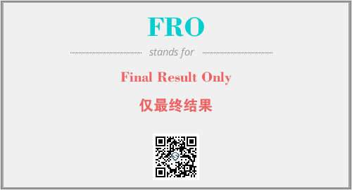 上述内容是“Final Result Only”作为“FRO”的缩写,解释为“仅最终结果”时的信息,以及英文缩略词FRO所代表的英文单词,其对应的中文拼音、详细解释以及在英文中的流行度和相关分类、应用领域及应用示例等。