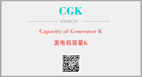 上述内容是“Capacity of Generator K”作为“CGK”的缩写,解释为“发电机容量K”时的信息,以及英文缩略词CGK所代表的英文单词,其对应的中文拼音、详细解释以及在英文中的流行度和相关分类、应用领域及应用示例等。